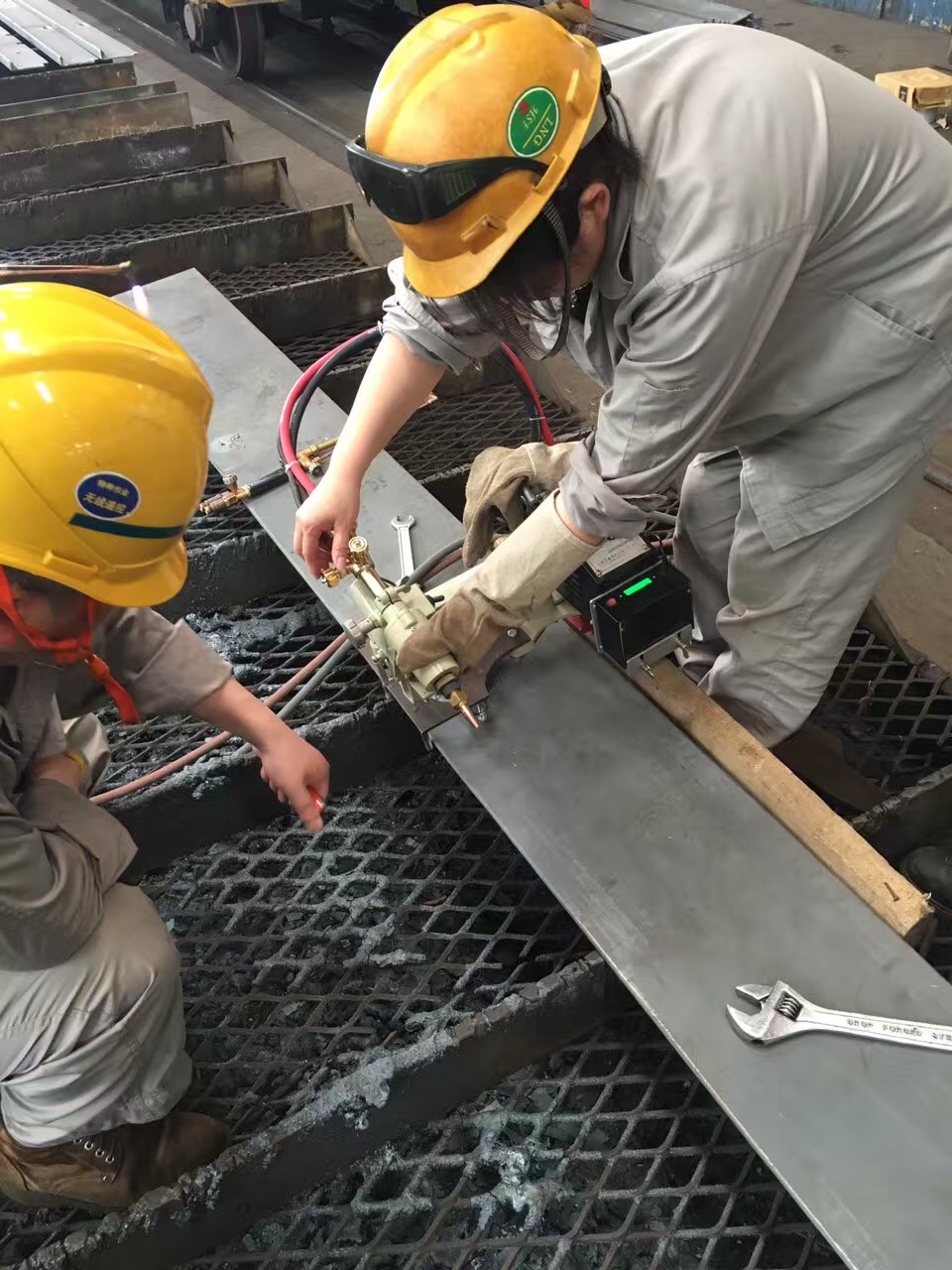 華威焊割電池驅動仿形切割機在上海某造船廠投入使用