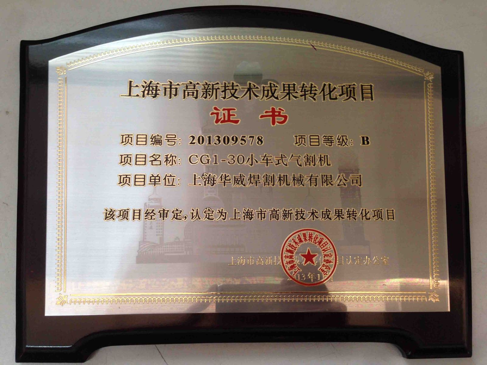 華威切割機在上海被認定為高新技術成果轉化項目