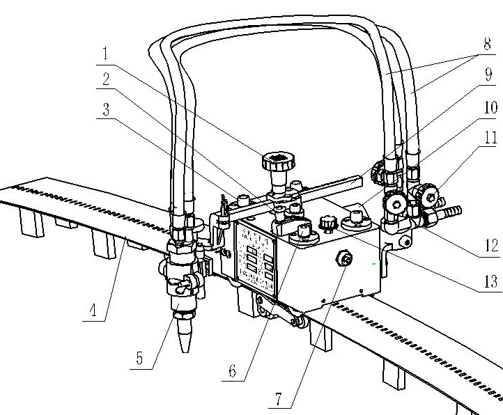 1.橫移手輪:通過調節該手輪,調節割炬橫向水平移動的距離。