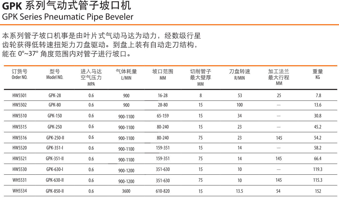 GPK系列坡口機(jī)專為鋼管的倒角、焊接坡口的切削而設(shè)計(jì)。其采用氣動(dòng)馬達(dá)作為動(dòng)力,內(nèi)漲式結(jié)構(gòu),自動(dòng)定位鋼管中心,操作方便。本機(jī)可對(duì)鋼管進(jìn)行倒角、焊接坡口及法蘭平面進(jìn)行加工。無論管壁厚薄,其加工性能與效率比起傳統(tǒng)工藝都有著不可替代的優(yōu)勢(shì)。