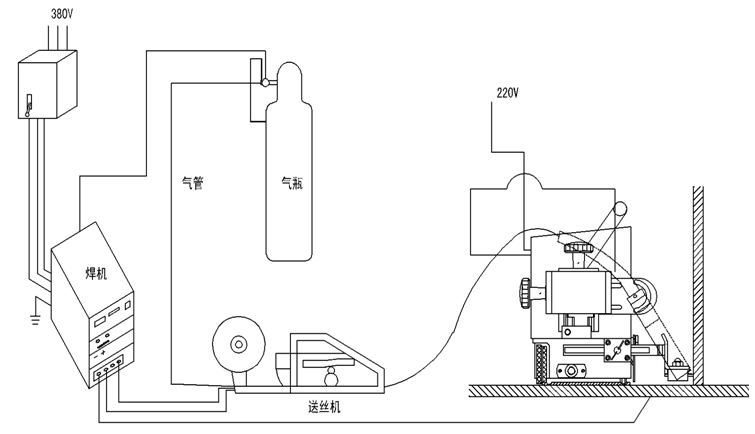 --從焊槍出來(lái)的焊槍開(kāi)關(guān)連接在小車的控制面板的2P端口