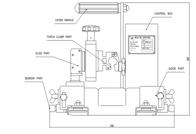 8)SENSOR PART:感應(yīng)停止開關(guān)。焊接到工件末端時被觸動后小車自動停止工作。