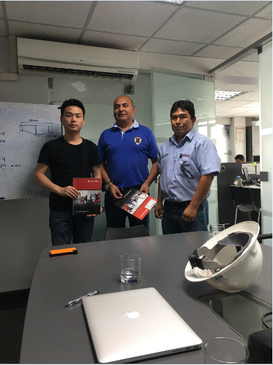 華威工程師在秘魯與客戶一同拜訪客戶并保養(yǎng)切割機器。