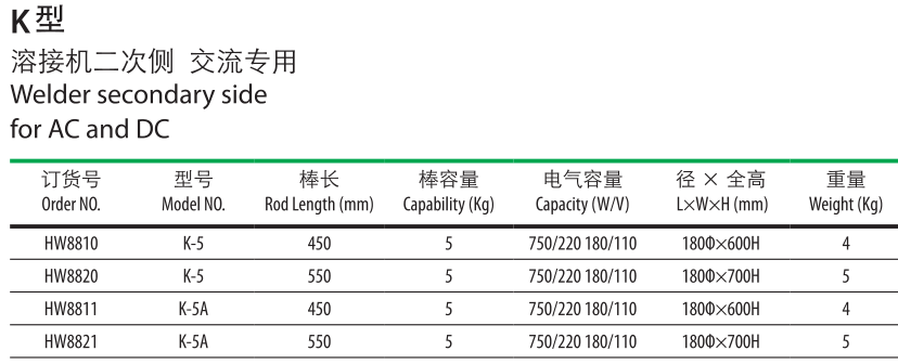 K型 熔接機二次側交流專用。