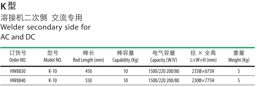 K型熔接機二次側交流專用。