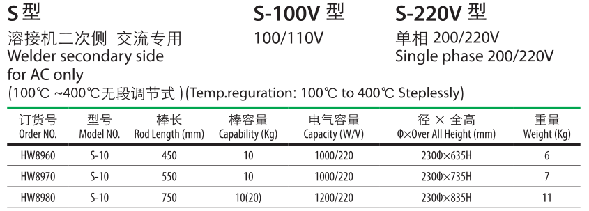 S型熔接機二次側交流專用。