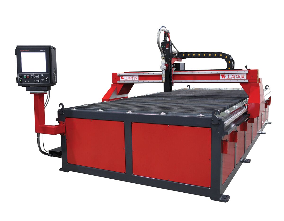 數控等離子切割技術的工作原理:以高溫高速的等離子弧為熱源,利用優化設計的噴嘴,產生經壓縮的高溫等離子流來熔化被切割的導電金屬,采用數字程序驅動機床運動,隨著機床運動,利用高速等離子的動量排除熔融金屬形成狹窄切縫的一種熱加工方法。 根據等離子電源的不同,等離子切割技術分為三類:(1)普通等離子切割。根據所使用的工作氣 體主要分為氬等離子切割、氧等離子切割等,切割電 流在100 A以下,切割厚度小于等于30 mm。(2)再約束等離子切割。由于等離子弧受到再次壓縮,其電流密度、切割弧的能量進一步集中,可大幅提高 切割速度和加工質量。(3)精細等離子切割。其等離 子電流密度是普通的數倍,且電弧穩定性好,切割精 度高,可達激光切割的下限。本研究工藝試驗將使用 精細等離子電源。