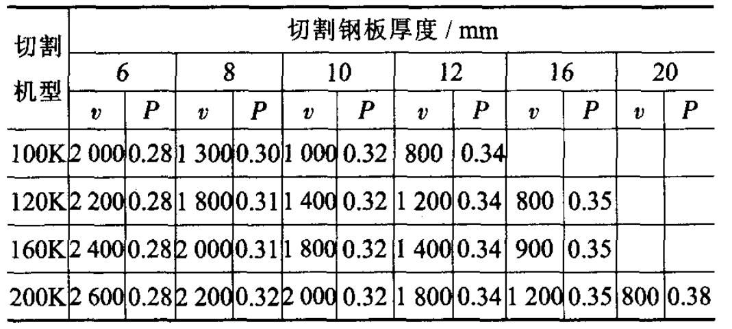 根據(jù)四種不同功率機(jī)型的試驗(yàn)結(jié)果,得出了不同功率切割機(jī)切割不同厚度鋼板的最佳切割參數(shù)如表2所示。根據(jù)這些數(shù)據(jù)我們在部分廠家進(jìn)行了實(shí)際應(yīng)用切割,效果很好,切割質(zhì)量大大提高。