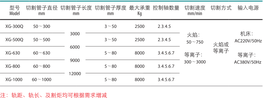 XG-300J系列數(shù)控管板切割機(jī)為3軸的數(shù)控切管機(jī)。當(dāng)設(shè)備離開(kāi)A軸工作臺(tái)時(shí)就是一臺(tái)平板數(shù)控切割機(jī)。