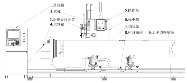 本機(jī)是一種對(duì)鋼管端部結(jié)合處作自動(dòng)計(jì)算和切斷的設(shè)備。該機(jī)器能廣泛應(yīng)用于建筑、化工、機(jī)械、冶金等行業(yè)的管道結(jié)構(gòu)件的切割加工。這些行業(yè)中有大量的管道結(jié)和相貫線(xiàn)孔、相貫線(xiàn)端頭,還有俗稱(chēng)“蝦米節(jié)”的彎頭,此類(lèi)加工大多采用制作樣板、劃線(xiàn)、人工放樣、手工切割、人工打磨等落后又繁復(fù)的方法來(lái)進(jìn)行。而本機(jī)能十分方便的切割此類(lèi)工件,并且操作人員不需計(jì)算與手工編程、只需輸入相互配合的管子的半徑、相交角度等參數(shù),機(jī)器就能自動(dòng)切割出管子的相貫線(xiàn)、相貫孔、以及焊接坡口。